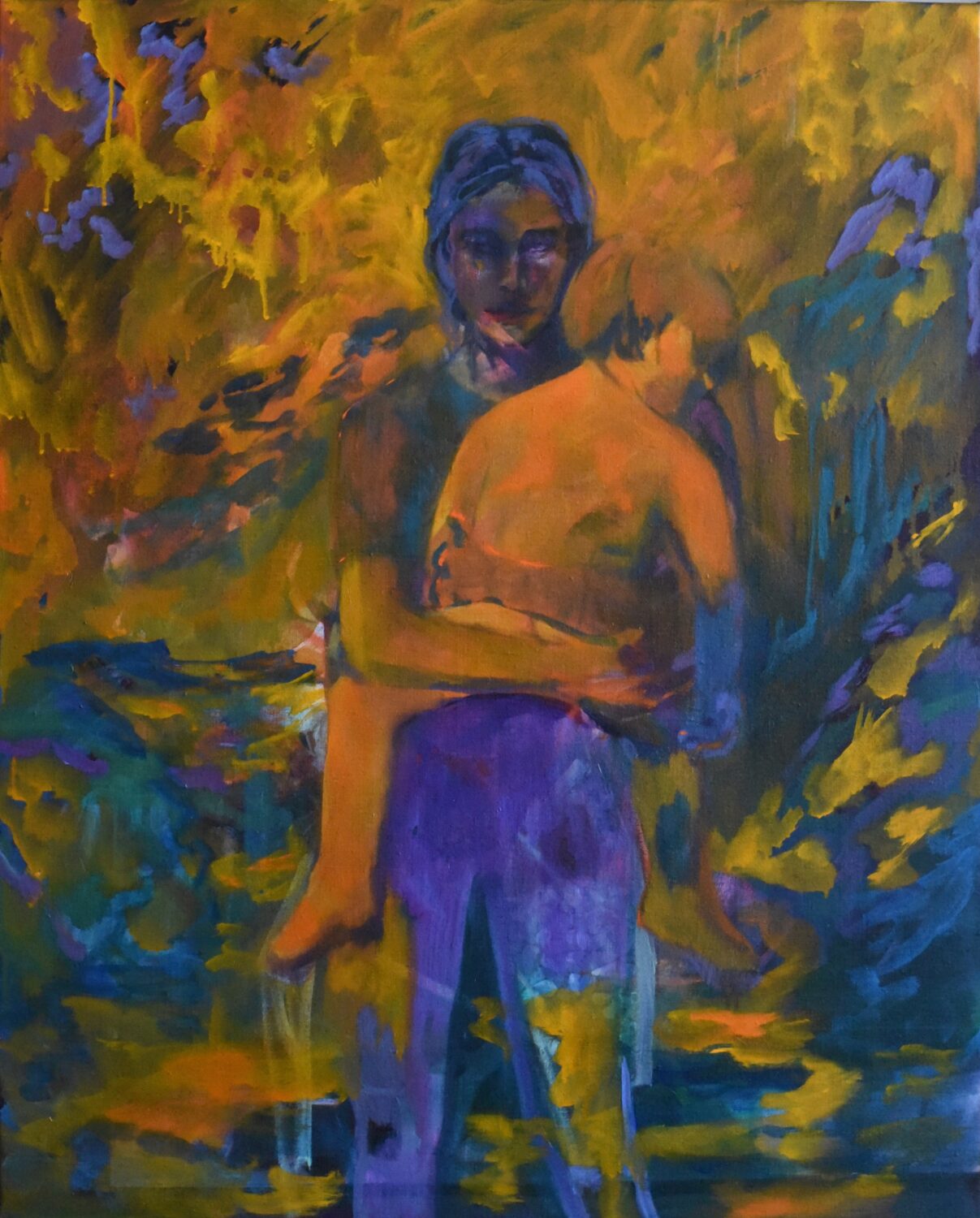 Elle développe une mythologie personnelle à travers une peinture narrative et expressive. La peinture est un temps de silence face au bruit du monde.