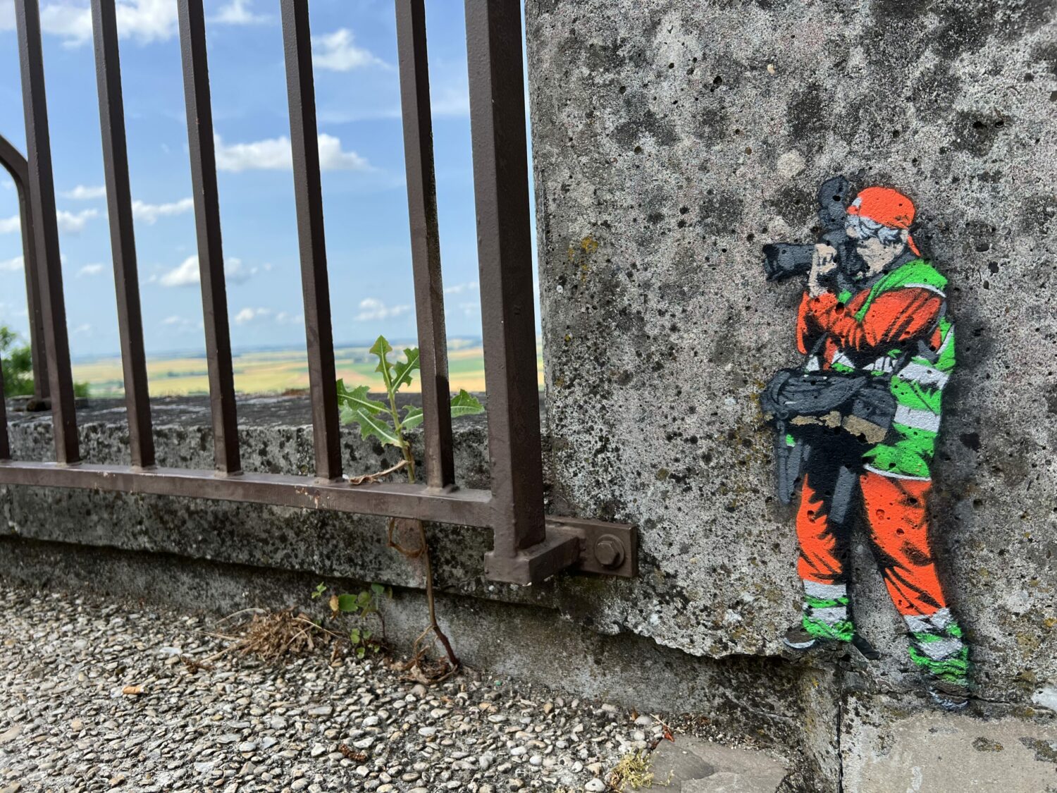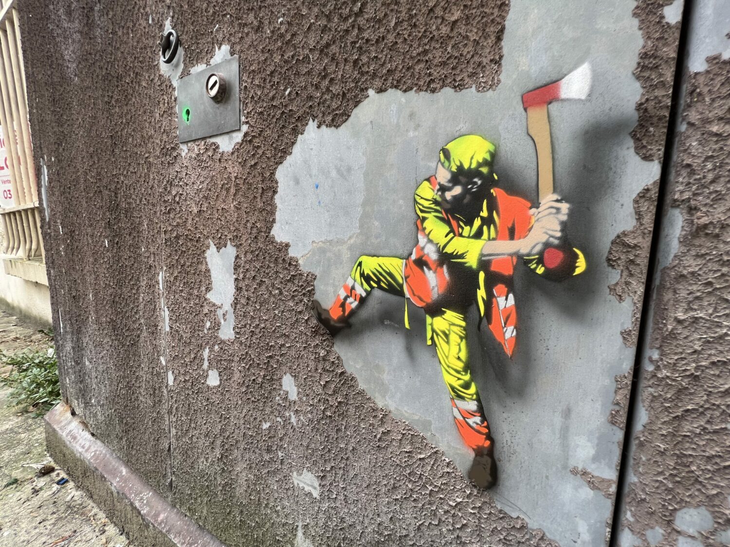 Pochoiriste et interventionniste urbain basé à Bruxelles, JAUNE s’amuse à détourner l’espace public avec humour et subtilité. Inspiré par son expérience d’agent d’assainissement, il met en scène de petits personnages en gilet fluorescent, souvent ignorés malgré leur visibilité éclatante. Ce jeu de contrastes entre le visible et l’invisible donne naissance à des compositions pleines d’ironie et de légèreté, où les travailleurs de l’ombre deviennent les protagonistes de scènes absurdes et poétiques. Depuis 2011, son travail dialogue avec l’urbanisme, interpellant les passants et redonnant une voix aux figures discrètes de la ville.
